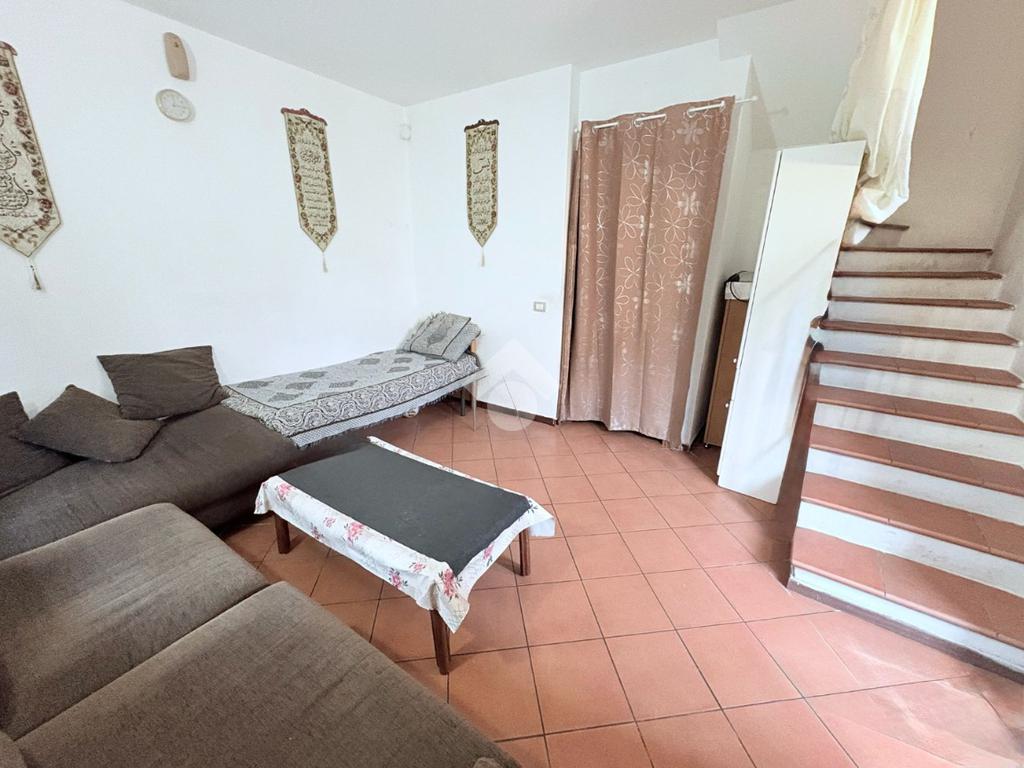 L’ingresso si apre direttamente sul soggiorno, ambiente accogliente e ben organizzato. Su questo livello troviamo inoltre un antibagno che ospita la caldaia e un bagno con doccia.